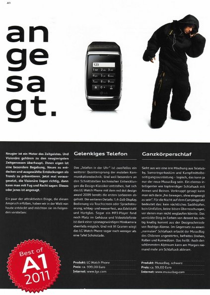 Sieht aus wie eine irre Mischung aus Teletubby, Sumoringerkostüm und Kampfmittelbeseitigungsausrüstung - logisch, das kann ja nur der neue Ganzkörperschlafsack sein. Ein ebenso intelligenter wie toptrendiger Schlafsack mit Armen und Beinen. Verknappt gesagt kann man sich darin „frei bewegen, ohne eingeengt zu sein“. Fur die Nacht auf dem Campingplatz bedautet das: kein nächtliches Sackhüpfen, kein Umfallen, keine bösen Überraschungen, vor denen man nicht weglaufen könnte. Das verrückte Ding in Farben von dezent bis richtig knallig kommt aus der Designschmiede von Rodrigo Alonso. Im Gegensatz zu einem „normalen“ Schlafsack erlaubt der Ganzkörperschlafsack des Chilenen ungestörtes, befreites Drehen, Rollen und Rumwälzen. Das heißt: Auch den schlimmsten Alptraum kann man am Morgen niemand mehr am Schlafsack ablesen.